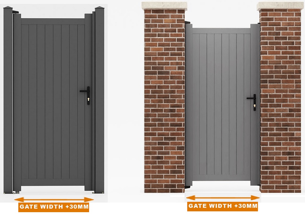 To ensure you have sufficient space for the top and bottom hinges, the height of the wall or posts needs to be at least 100mm taller than the physical height of the gate you purchase.