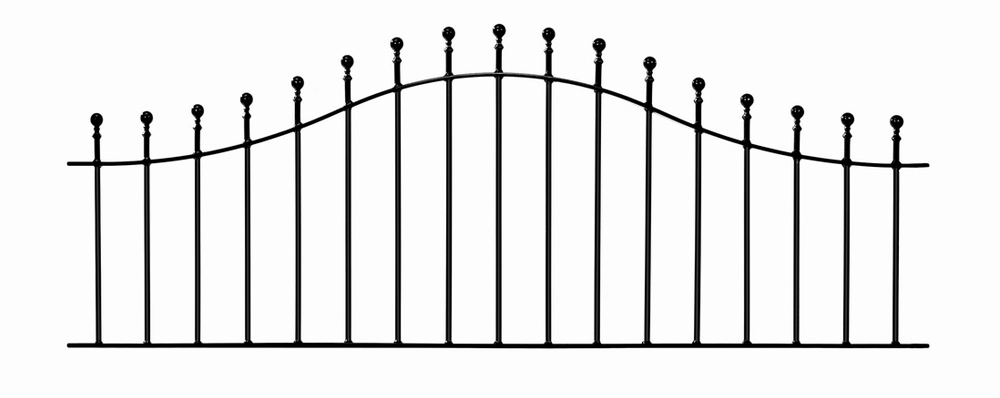 The Manor Shaped Wrought Iron Style Railings have a timeless arched profile and simple ball top finials for enhanced visual appeal. Perfect for any garden location, they also benefit from low maintenance zinc plated and black powder-coated paint finish.