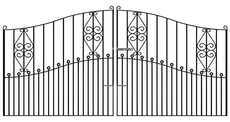 The Royale Marquis Wrought Iron Style Double Metal Estate Gates are an excellent choice for enhancing the look of your driveway entrance. Handmade from high-quality steel components, these beautiful wrought iron-style gates will complement any residential setting, providing privacy and security at an affordable price. With a formidable height of 7ft to the top of the arch, they are available to buy online in a range of sizes to suit openings up to 16ft. The gates feature a stylish arched top rail, ornate scrollwork and ball top finials, which combine to produce a timeless overall appearance. Regardless of the size you order, each pair of gates includes surface-mounted heavy-duty adjustable hinges, which enable installation onto any appropriate surface. Furthermore, an in-ground drop bolt and secure latch mechanism are included.